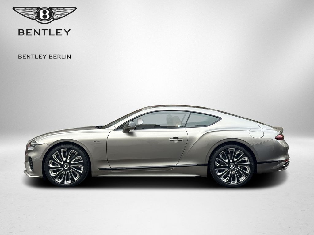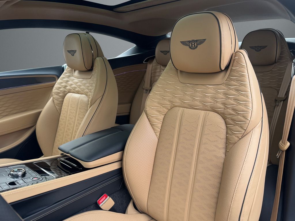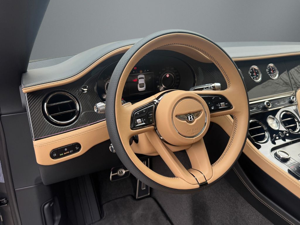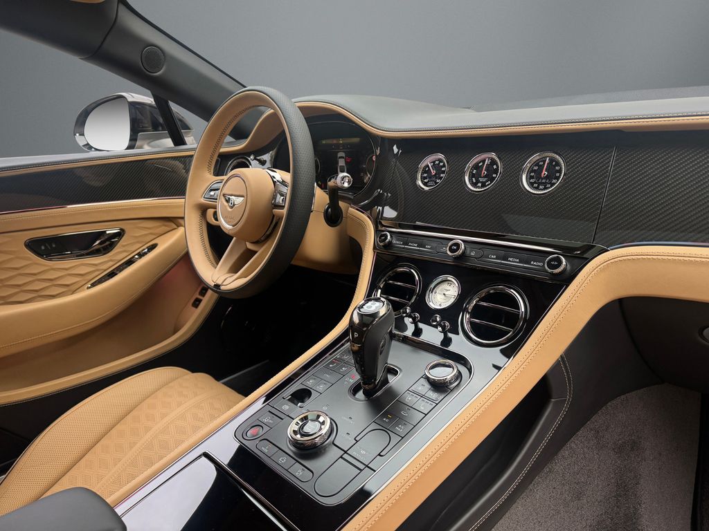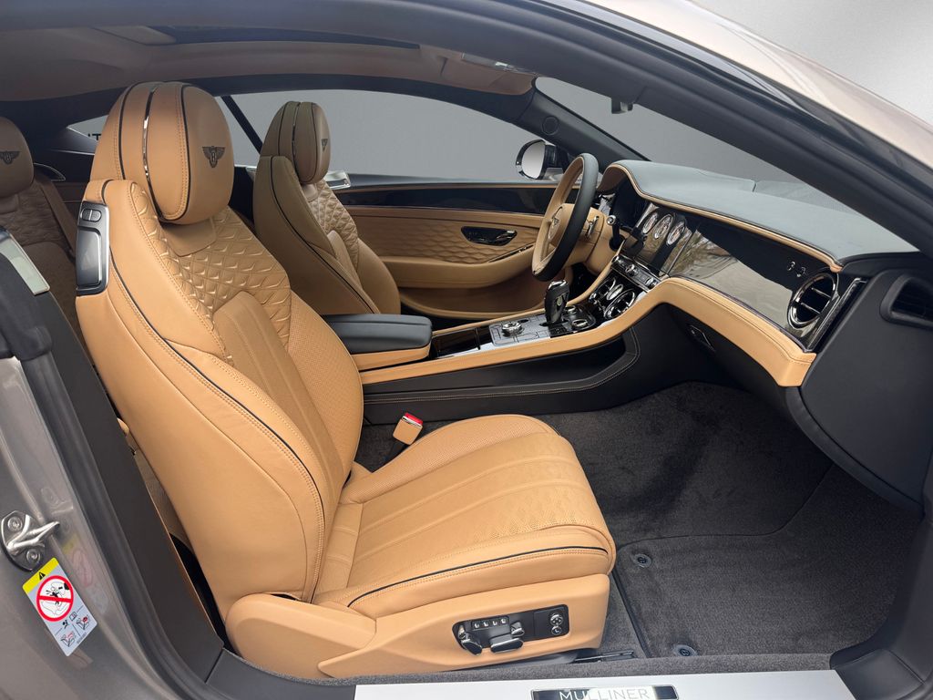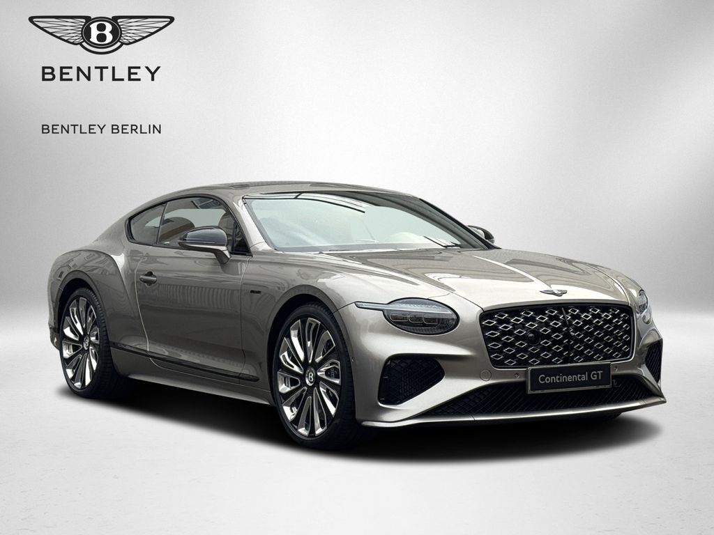 GT MULLINER V8 HYBRID - MY2026 - NAIM Sound System - Rotating Display - Panoramadach - Außenfarbe: Pale Brodgar - Innenfarbe: Camel(Main Hide) - Cumbrian Beluga(Secondary Hide) - Dekor: High Gloss Carbon Fibre - - Ausstattung: - - Sonderlackierung in "Pale Brodgar", "Naim for Bentley" Audiosystem, Fernsteuerung für Garagentür-/Toröffner, Contrast Stitching und Seat Piping, Blackline Specification, Dark Chrome Interior Specification, Panorama Glasdach, Carbon Ceramic Bremsen mit schwarzen Bremssätteln, Touring Spezifikation Head-up Display, Spurhalteassistent, Night Vision - Nachtsichtassistent, Stauassistent, Bentley Safeguard Plus - Pre Safe Bremsfunktion, Adaptive Cruise Control (ACC), MULLINER EDITION Bentley Rotating Display, Bentley Dynamic Ride, Luftionisator, Key Box - Mulliner Key Box, Mood Lighting - Ambientebeleuchtung, Hochflorige Fußmatten, gestickte Bentley Embleme in "Camel", Zweifarbiges 3-Speichen Lederlenkrad - beheizt, LED Begrüßungslicht by Mulliner, Mulliner Uhr, Komfortspezifikation für die Vordersitze, Pedalerie im Sportdesign, Mulliner Kontrastnähte, Colour Spezifikation,"Jewel"-Schmuckdeckel für Tankverschluss und Öleinfüllstutzen, Sitze und Türverkleidungen mit Steppung im Diamantrautenmuster, Matrixgrill im unteren Stoßfänger - schwarz, Double-Diamond Kühlergrill, 22" Mulliner Räder schwarz lackiert mit selbstausrichtenden Radnabenabdeckung, Mulliner Lufteinlässe im vordern Kotflügel, Furnier in Piano Linen by Mulliner - - - - - Änderungen, Irrtum sowie Zwischenverkauf vorbehalten. BENTLEY BERLIN -BENTLEY Continental GT MULLINER V8 HYBRID - MY26