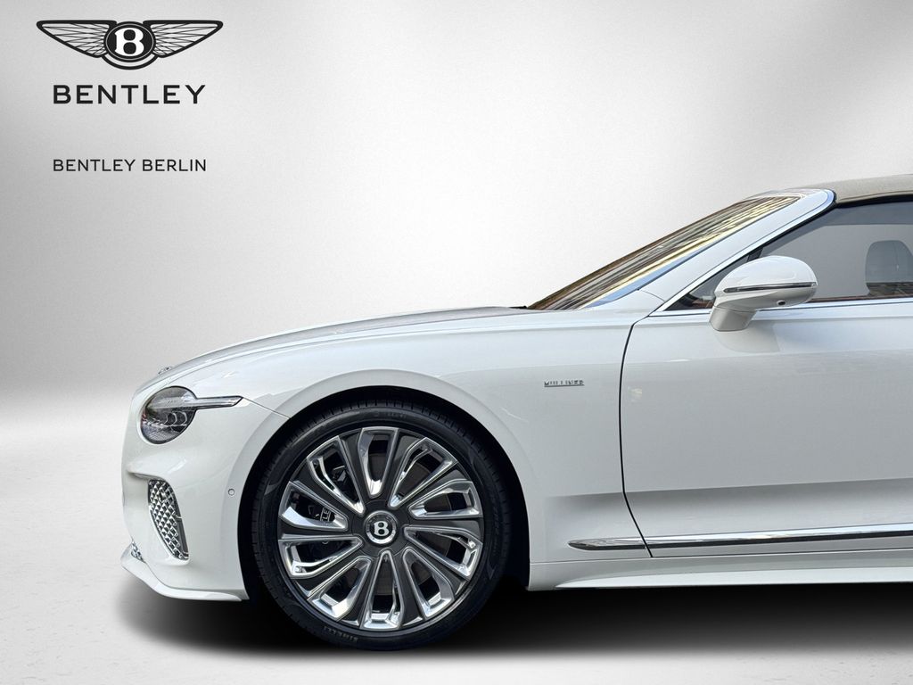 GTC MULLINER V8 HYBRID - MY2026 - NAIM Sound System - Rotating Display - Sofort verfügbar - Außenfarbe: Glacier White - Innenfarbe: Main Hide Linen / Secondary Newmarket Tan - White- Akzentfarbe - Dekor: Liquid Amber - Verdeck: Tweed - - Ausstattung: - - "NAIM for Bentley" Audiosystem , Garagentoröffner, Verdeck in Sonderfarbe "Tweed" , Mulliner Bespoke Interior, Zusätzliche Diamant Riffelung , Touring Specification Head-Up Display, Spurhalteassistent, Night Vision - Nachtsichtassistent, Stauassistent, Bentley Safeguard Plus - Pre-Safe-Bremsfunktion, Adaptive Cruise Control (ACC), MULLINER EDITION Bentley Rotating Display, Bentley Dynamic Ride, Luftionisator, Key Box - Mulliner Key Box, Mood Lighting - Ambientebeleuchtung, Hochflorige Fußmatten, gestickte Bentley Embleme in "White", Zweifarbiges 3-Speichen Lederlenkrad - beheizt, LED Begrüßungslicht by Mulliner, Komfortspezifikation für die Vordersitze, Pedalerie im Sportdesign, Mulliner Uhr, Colour Spezifikation, "Jewel"-Schmuckdeckel für Tankverschluss und Öleinfüllstutzen, Sitze und Türverkleidungen mit Steppung im Diamantrautenmuster, Matrixgrill im unteren Stoßfänger hell verchromt, Double-Diamond Kühlergrill, 22" Mulliner Räder lackiert und poliert mit selbstausrichtenden Radnabenabdeckungen, Mulliner Lufteinlässe im vordern Kotflügel, Furnier in "Liquid Amber" - - Fahrzeug sofort verfügbar! - - Änderungen, Irrtum sowie Zwischenverkauf vorbehalten. BENTLEY BERLIN -BENTLEY Continental GTC MULLINER V8 HYBRID - MY26