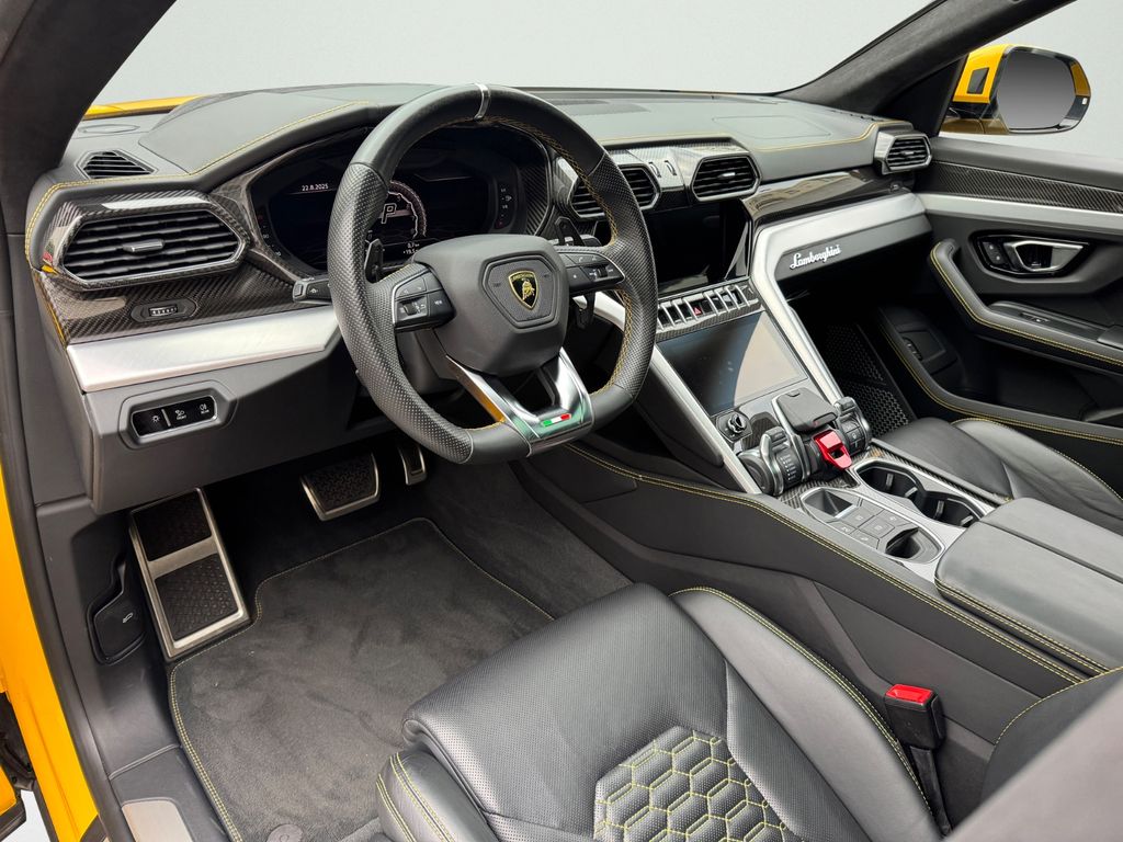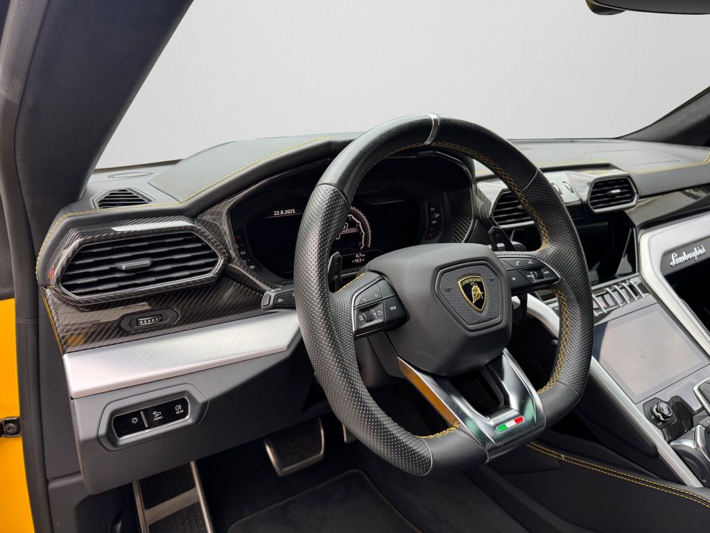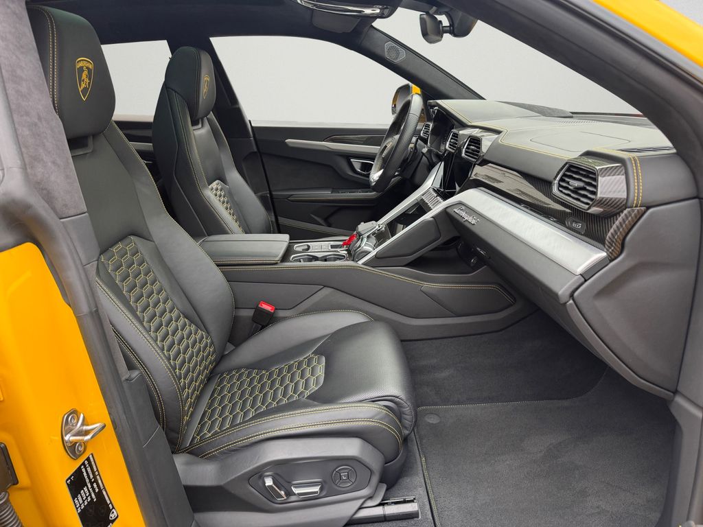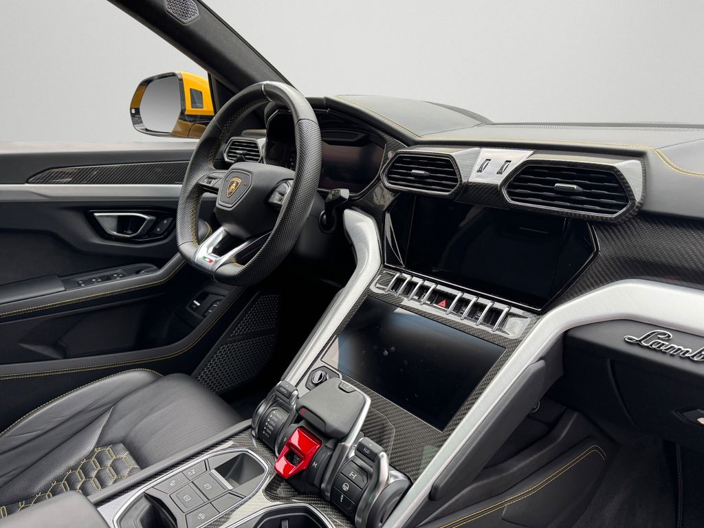 Lamborghini Urus - Panormadach- Carbon-Interieur-Paket - 23`Zoll LeichtmetallfelgenAußenfarbe: Giallo Auge - Innenfarbe: Nero Ade - Interieur: Carbon - - Ausstattung: - - Q-Citura Leder, Kontrastnähte in Giallo Taurus, Beheizbares Multifuntionslenkrad mit geprägtem Leder, Kontrastnähte am Lenkrad in Giallo Taurus, Fußmatten in Nero Ade mit Nähten in Giallo Taurus, 23“ Taigete Aluräder in schwarz glanz, Bremssättel gelb, Panorama Glasdach, Privacy Verglasung, Auspuffblenden in schwarz, Heck Diffusor in schwarz glanz, Sitzheizung vorn und hinten, Elektrische Vordersitze mit Belüftung und Massagefunktion, Alcantara Dachhimmel, Großes Carbon Interior Paket, Gestickte Lamborghini Embleme in den Kopfstützen in Giallo Taurus, Advanced 3D "Bang & Olufsen Sound System", DAB Digital Radio, Park Assistant Package, Lamborghini ANIMA with Off-Road modes, Head-Up Display, Ambientebeleuchtung, Soft Close für Türen, Elektrischer Kofferraum, Vorbereitung für VTS (Vehicle Tracking System) - - Änderungen, Irrtum sowie Zwischenverkauf vorbehalten. BENTLEY BERLINLAMBORGHINI Urus PANORAMA CARBON 23`ZOLL B&O